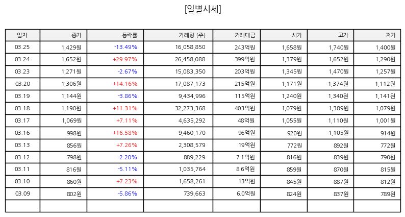 결론적으로 단기적으로는 급등 이후 조정 국면에 진입한 것으로 보이며, 향후에는 거래량 감소와 함께 가격 안정 구간을 형성하는지가 중요한 포인트다. 투자자는 단기 변동성보다 사업 성장성과 시장 확대 가능성을 중심으로 접근할 필요가 있다.